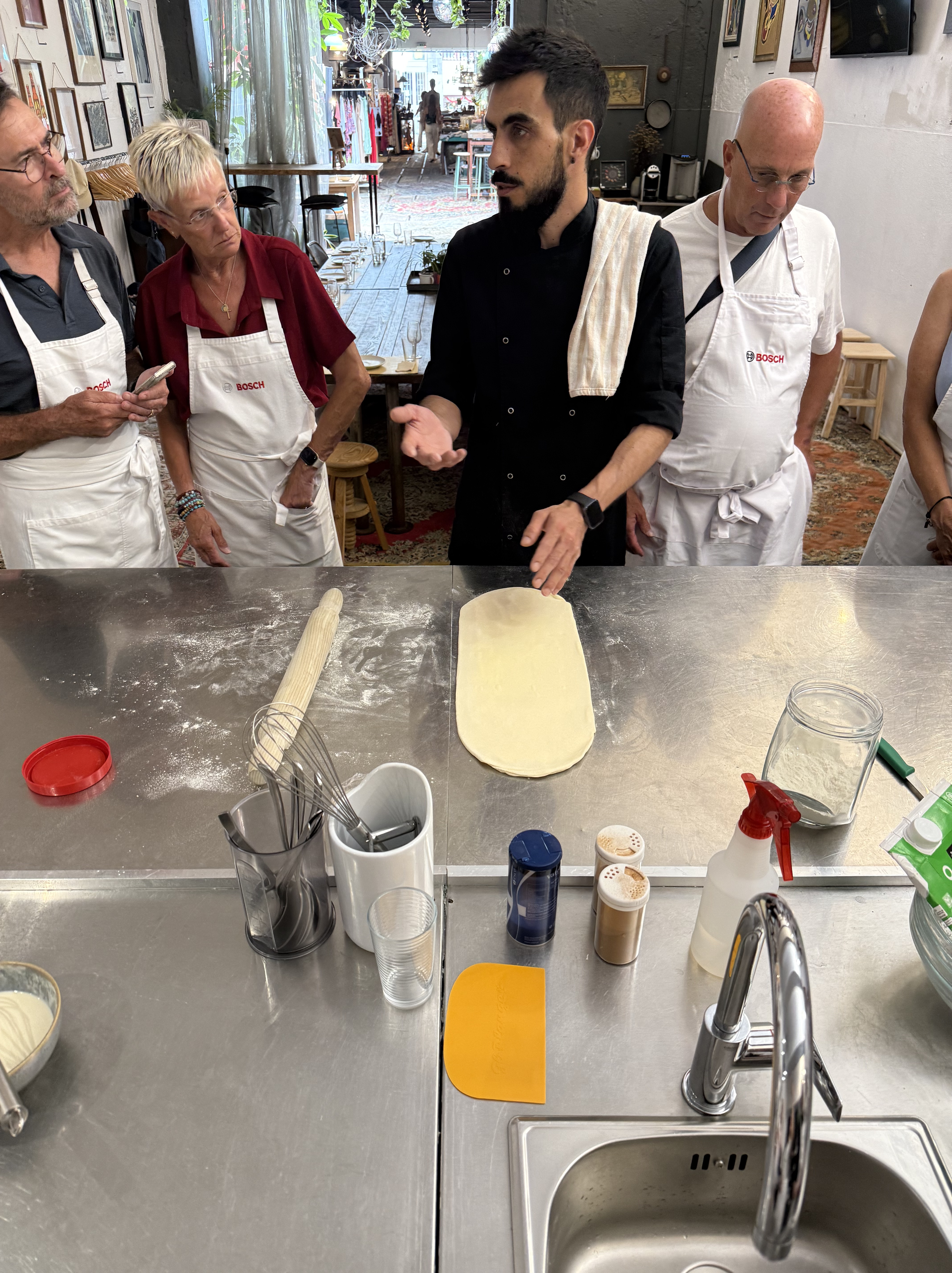 Pastel de nata (pasteis de nata, plural) is an icon of Portuguese cuisine. These little puff pastry tarts are filled with an egg custard, and they are perhaps the perfect balance to a strong coffee, so we couldn’t pass up the opportunity to take a class and learn how to make them ourselves! gain, a bit of a gamble since it was a group activity, but mst of the people were cool and we had a great time.