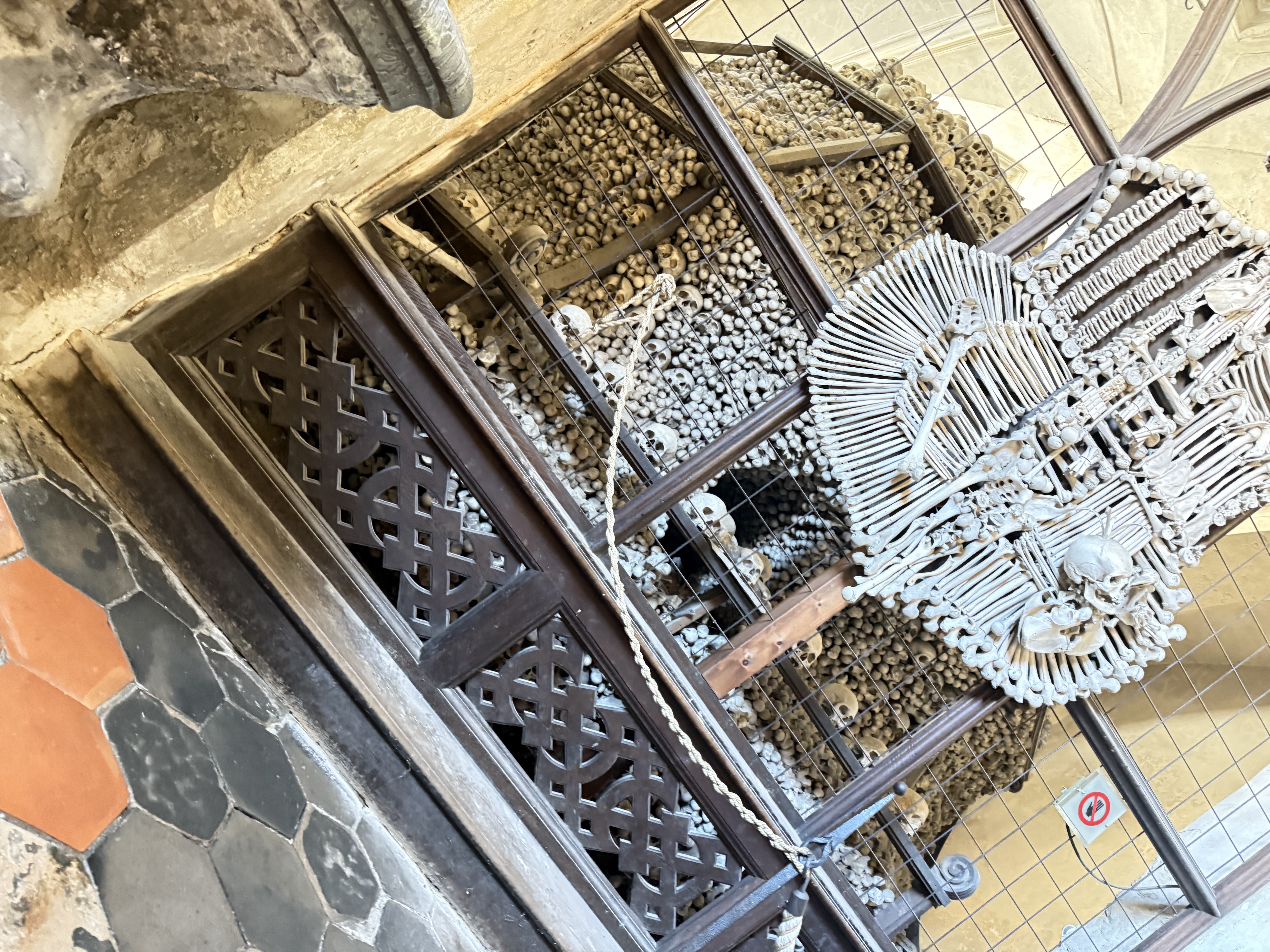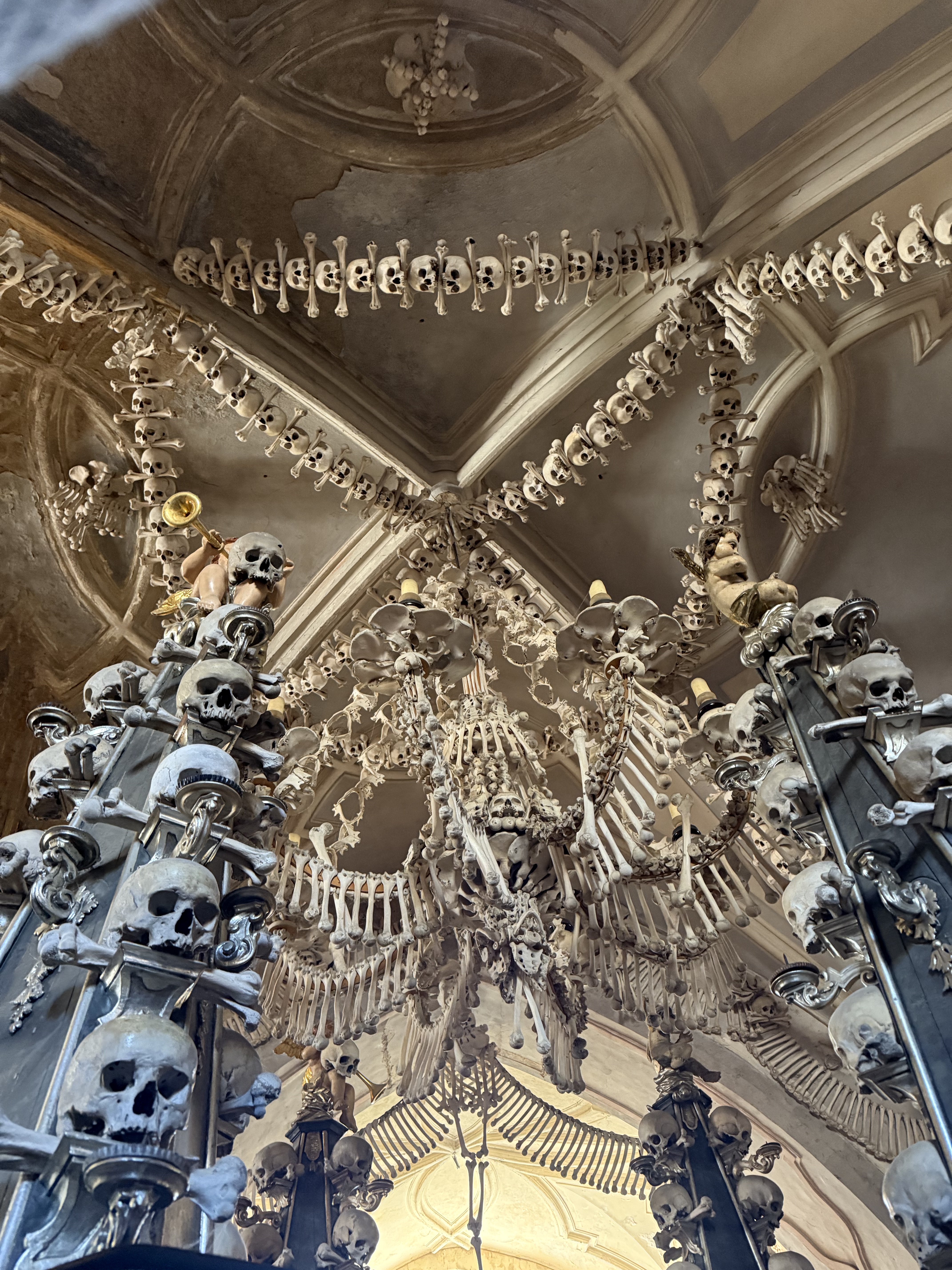 The Sedlec Ossuary isn’t technically made of bones – it is decorated with bones. I still have questions and they will apparently remain unanswered as there were paltry infographics in the church. They also don’t allow pictures, so I only have a few illicit ones.